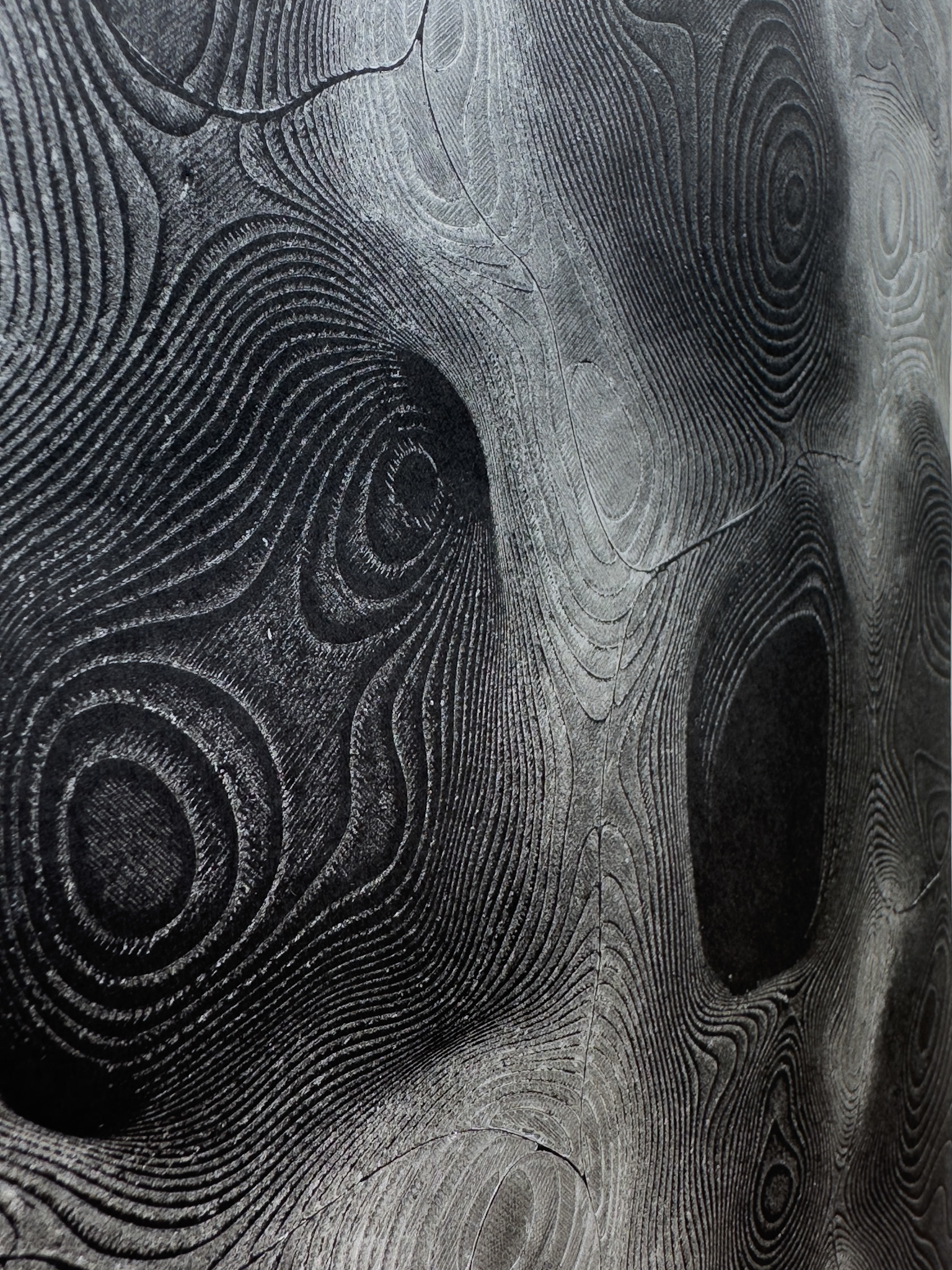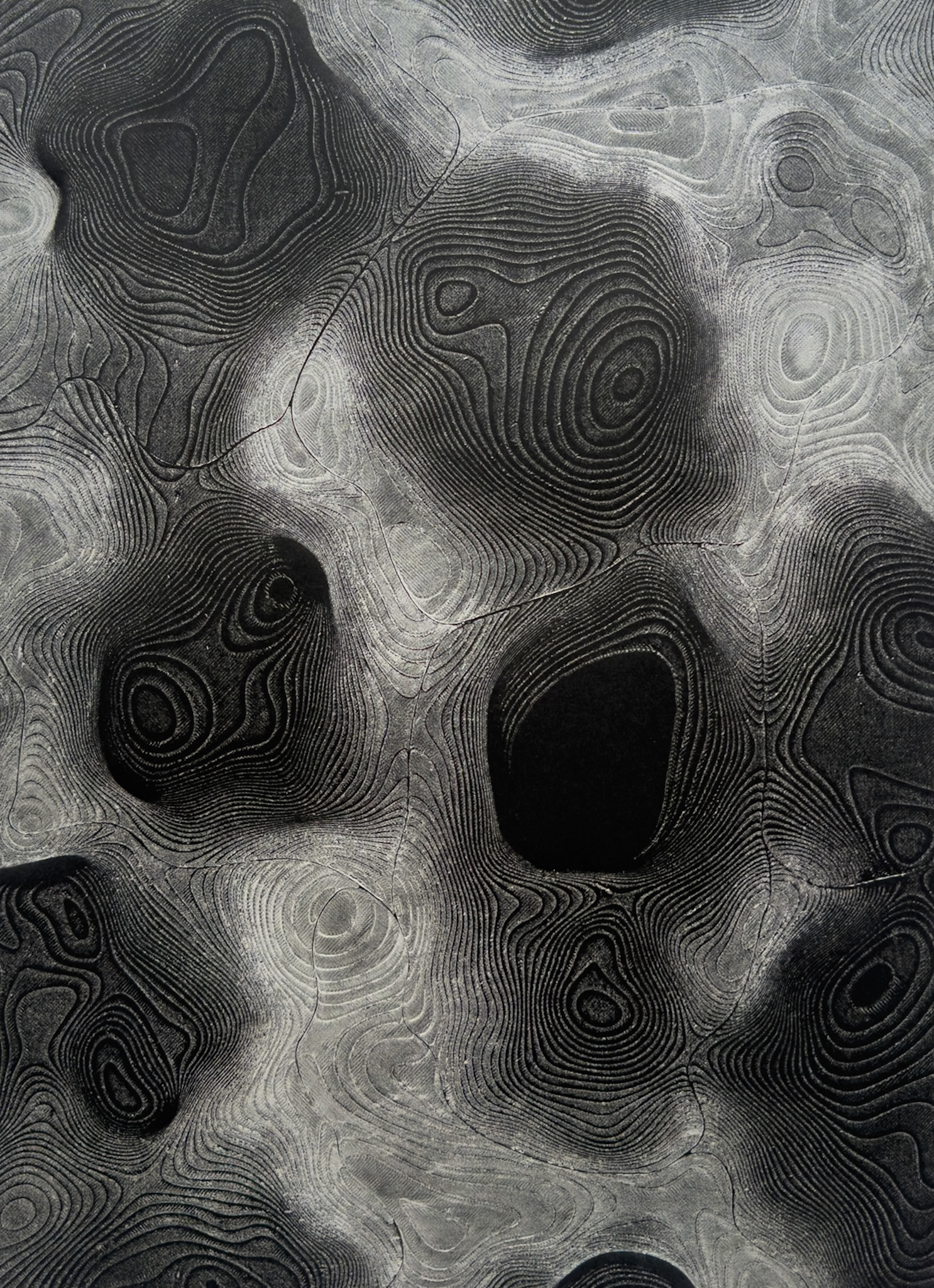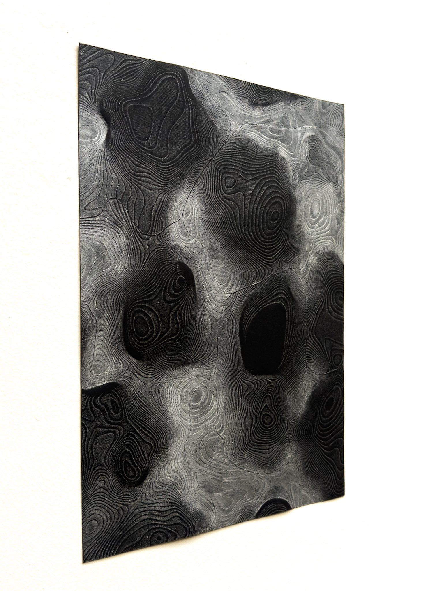 Huecograbado con tinta plateada sobre papel negro